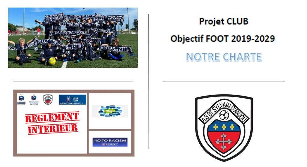 Le rôle principal de cette CHARTE de l'As Saint Sylvain d'Anjou FOOTBALL est de permettre de diffuser les valeurs du Club auprès de tous ses membres mais également à l’extérieur de manière transparente.