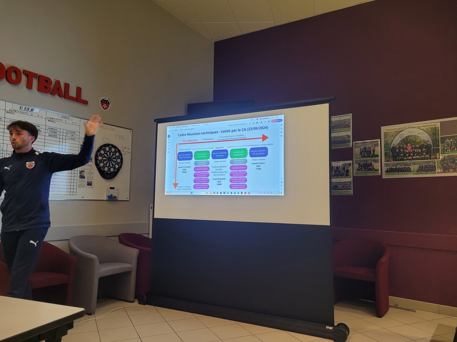 Organisée et animée par Guillian Godet notre Responsable Sportif & Administratif (BMF) et Laurent Prieto notre nouveau Coordinateur Foot Jeunes (BEF), cette réunion a été l'occasion de faire connaissance, de présenter le cadre des rencontres tout au long de l'année et surtout les axes de travail définis sur le court et moyen terme.